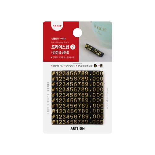 | 포장단위 | 10세트 - 1세트 구성: 14블록 / 1~9번: 각 1개입 / 0번: 3개입 / 쉼표(,): 1개입 / ₩: 1개입 |