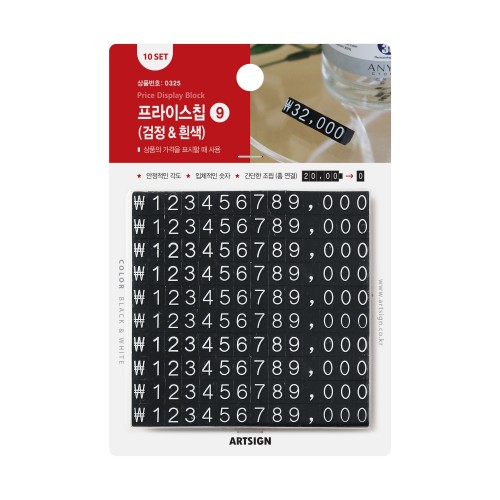 | 포장단위 | 10세트 - 1세트 구성: 14블록 / 1~9번: 각 1개입 / 0번: 3개입 / 쉼표(,): 1개입 / ₩: 1개입 |