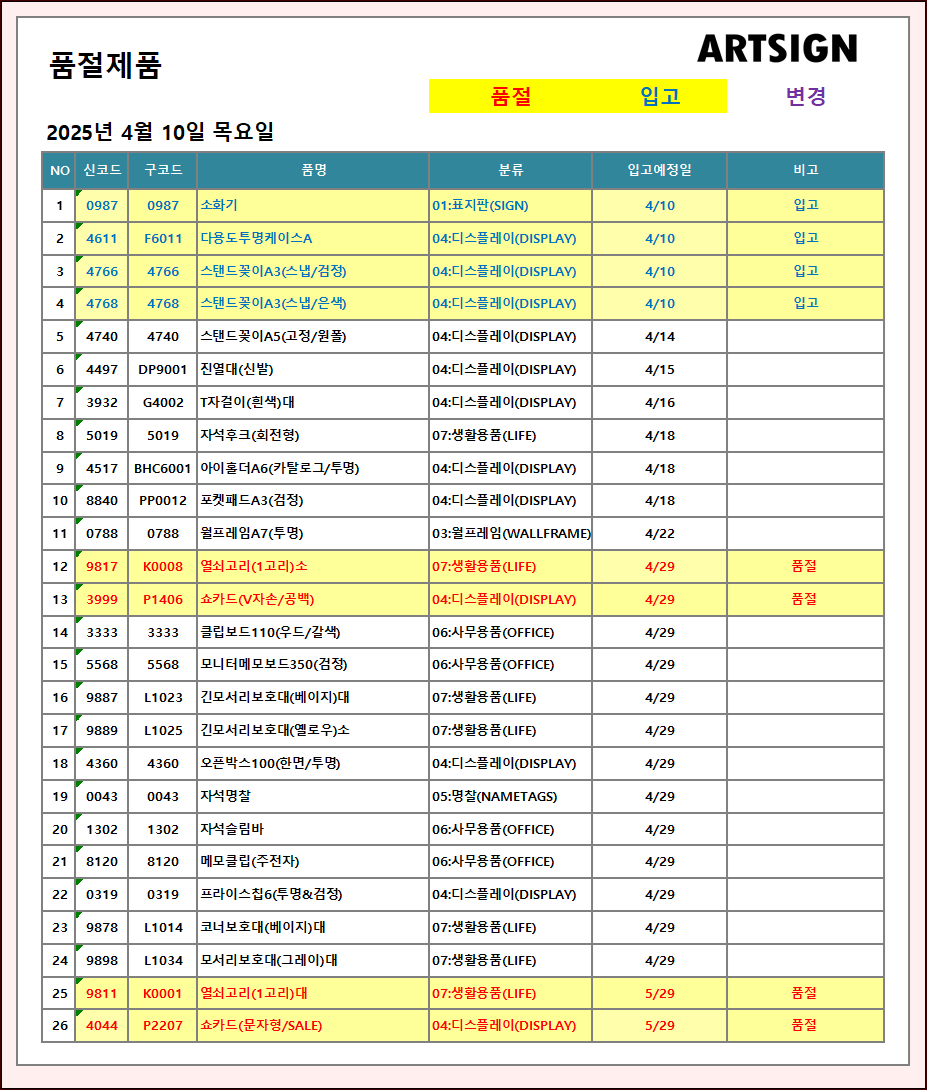 품절 / 입고 ] 2025년 4월 10일