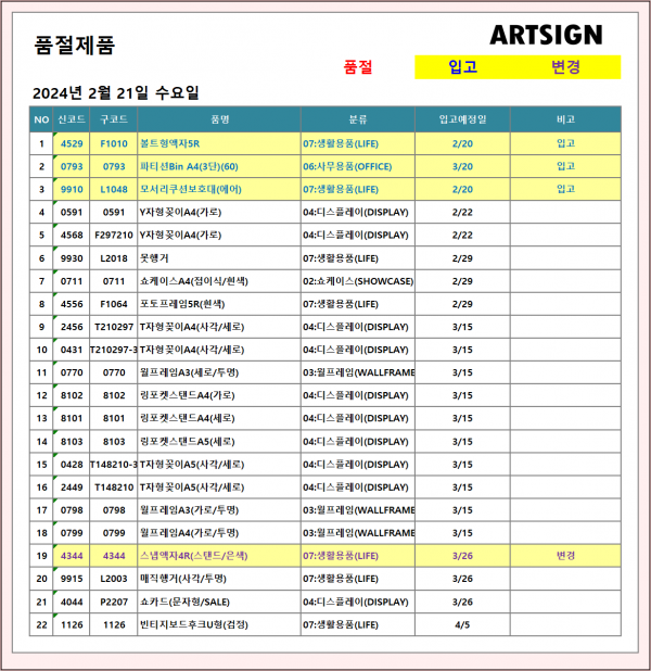 입고 / 변경 ] 2024년 2월 21일