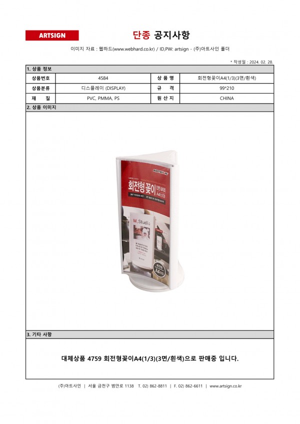 단종 상품 공지 입니다.