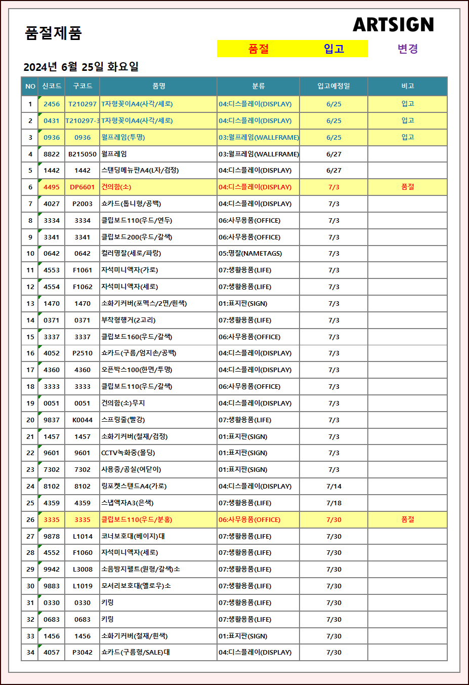 품절 제품과 입고 된 제품에 대해 안내 드립니다.