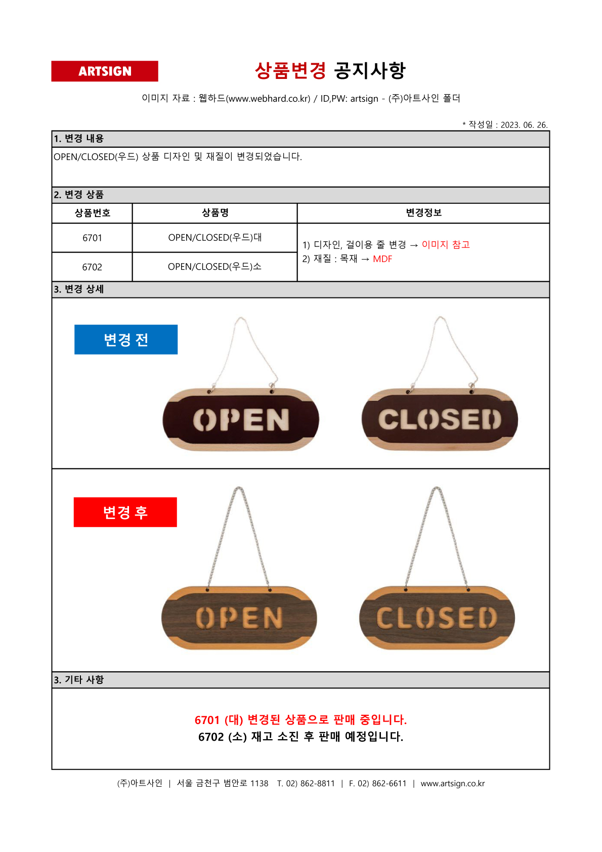 상품변경 ] 6701 6702 OPEN,CLOSED(우드)