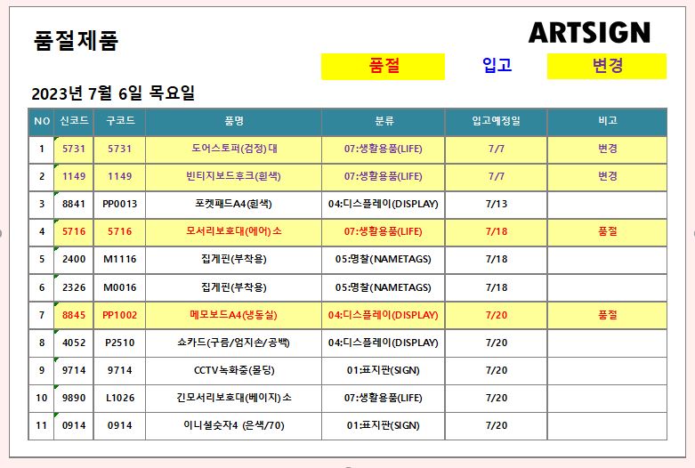 품절 / 변경 ] 2023년 7월6일