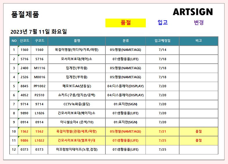 품절 ] 2023년 7월 11일