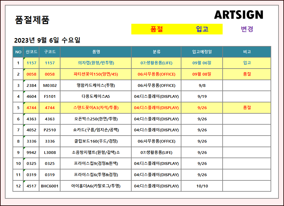 품절제품과 입고된 제품에 대해 안내드립니다.