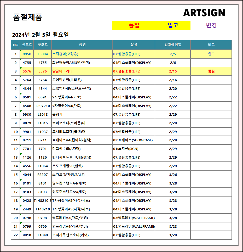 품절 / 입고 ] 2024년 2월 5일