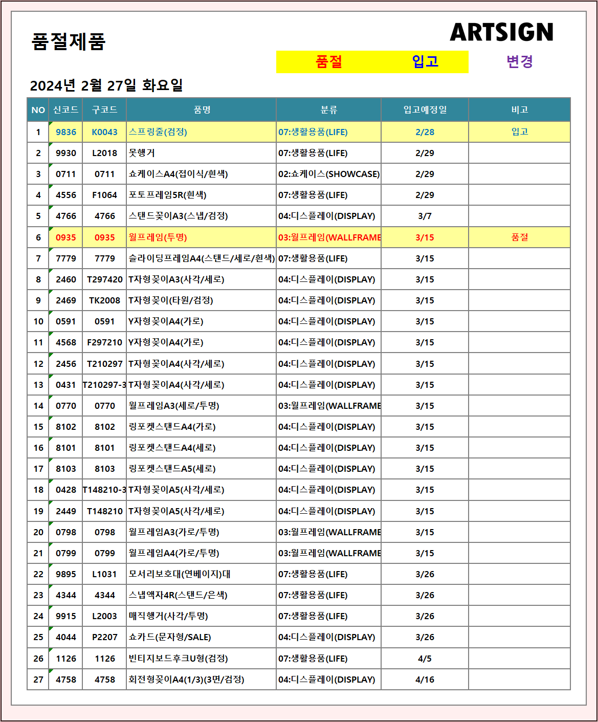 품절 / 입고 ] 2024년 2월 27일