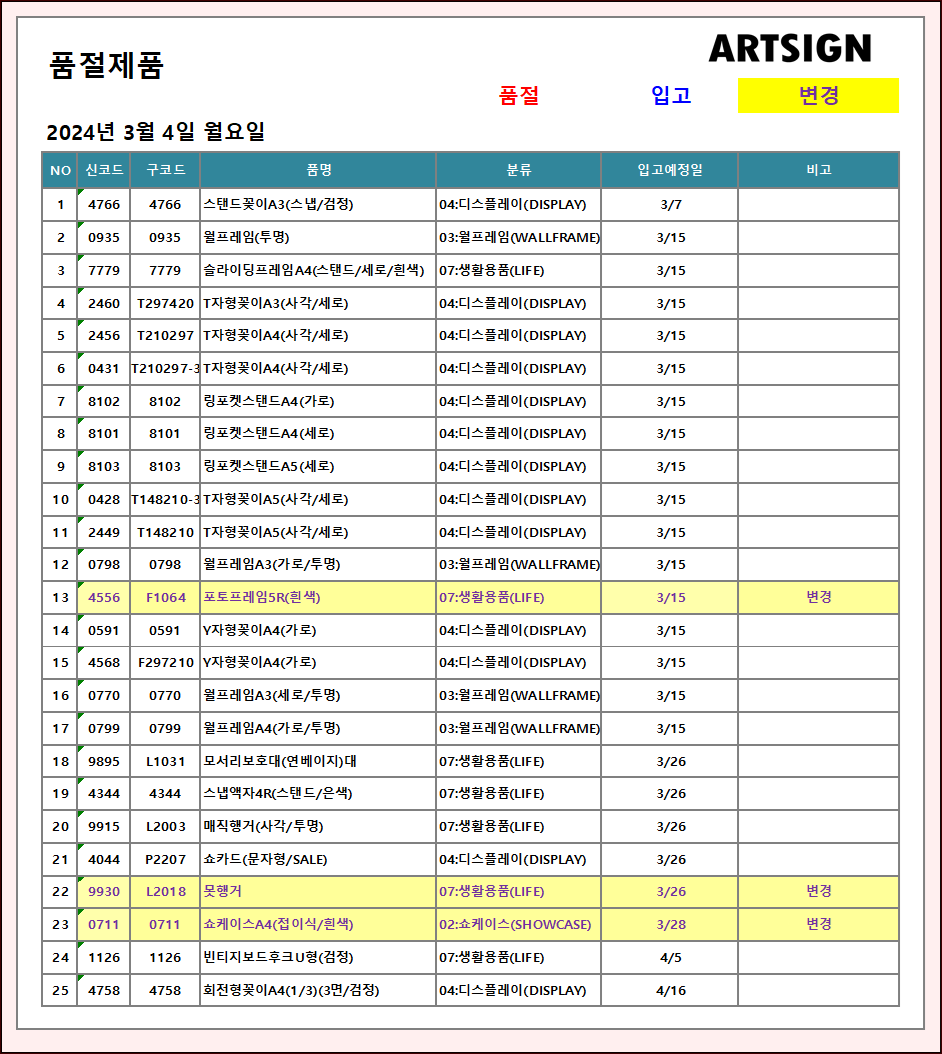 품절 제품의 입고 일이 변경되어 안내 드립니다.
