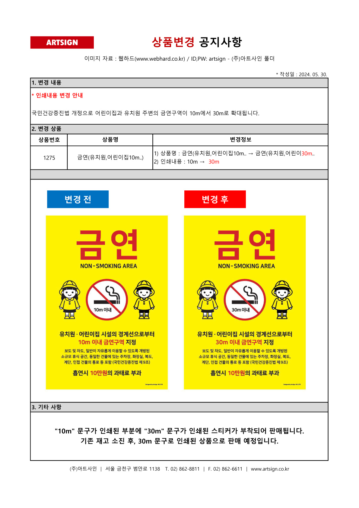 상품변경] 1275 금연(유치원 · 어린이집 시설의 경계선으로부터 30m ..)
