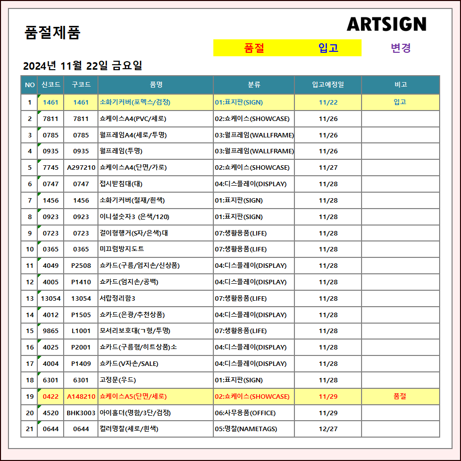 품절 / 입고 ] 2024년 11월 22일