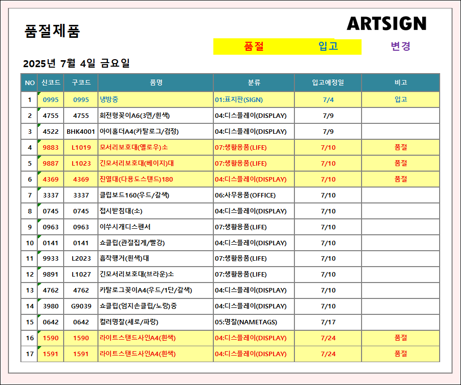 품절 / 입고 ] 2025년 7월 4일