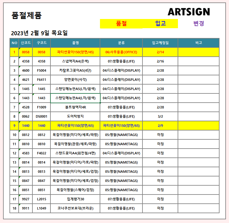 품절/입고] 2023년 2월 9일