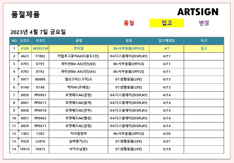품절제품이 입고되어 안내드립니다.
