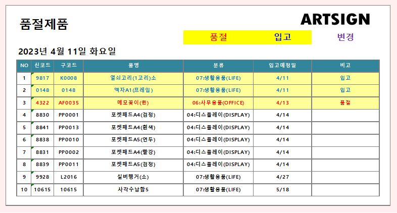 품절제품과 입고된 제품에 대해 안내드립니다.
