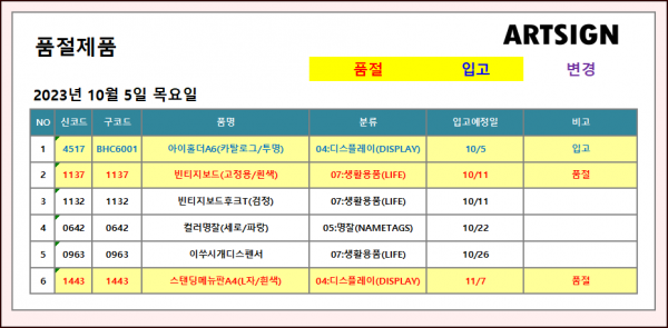 품절제품과 입고된 제품에 대해 안내드립니다.