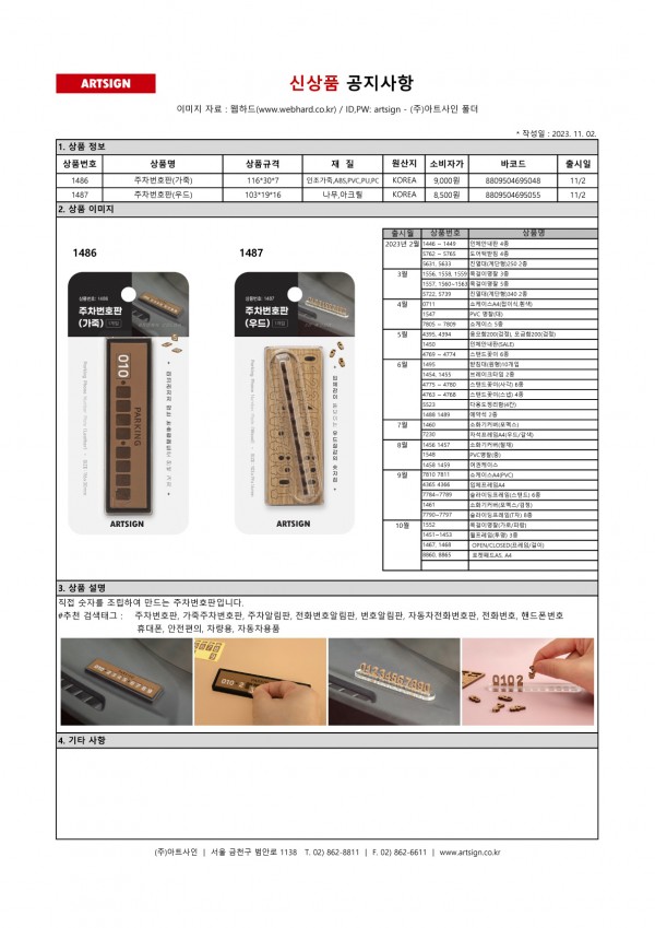 신상품 ] 주차번호판 2종 출시
