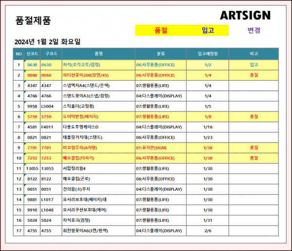 품절 / 입고 ] 2024년 1월 2일