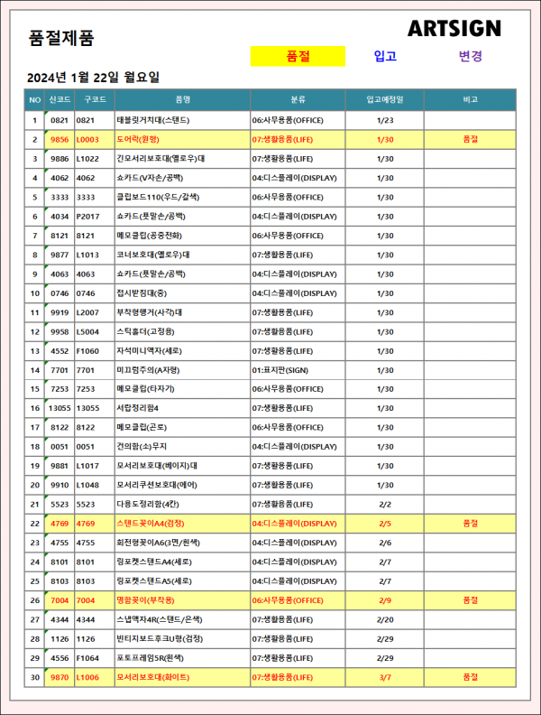 품절 ] 2024년 1월 22일