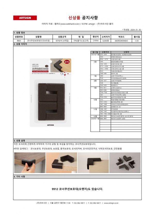 신상품 ] 코너쿠션보호대(다크브라운) 출시
