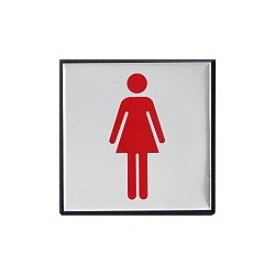 은백색의 부드러운 금속으로 고급스러운 분위기를 연출하는 알루미늄 소재의 남·녀 화장실 표지판입니다.