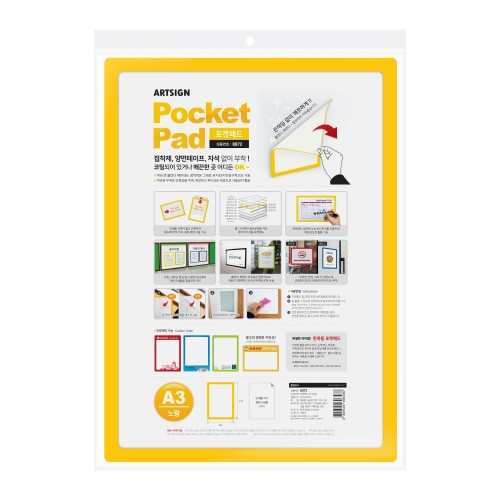 포켓패드, A3사이즈, 부착식, 안내판, 안내문, 게시판, 게시판꾸미기, 냉장고메모보드