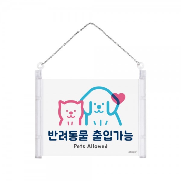 ‘ 반려동물 출입가능 ’ 이라는 문구가 필요한 상점에 사용하는 걸이형 안내 표지판입니다.
