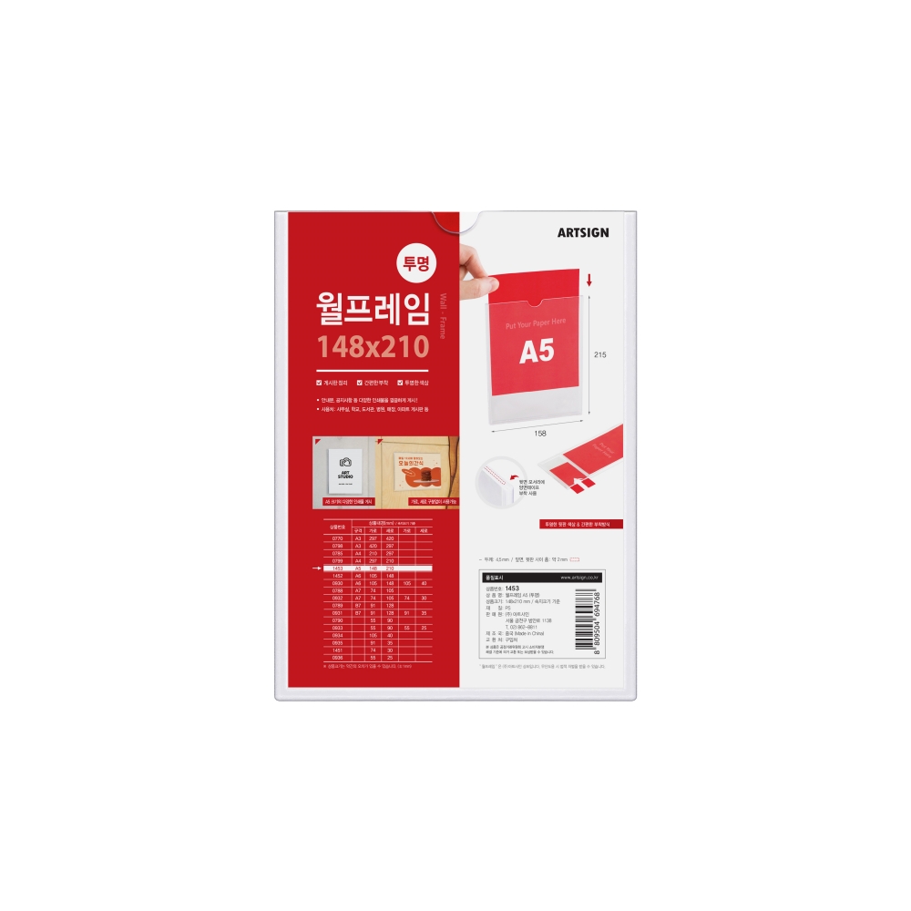 프레임 전체가 투명한 월프레임으로 안내문, 공지사항 등 다양한 인쇄물을 깔끔하게 게시하여 사용해보세요. (양면테이프 포함)