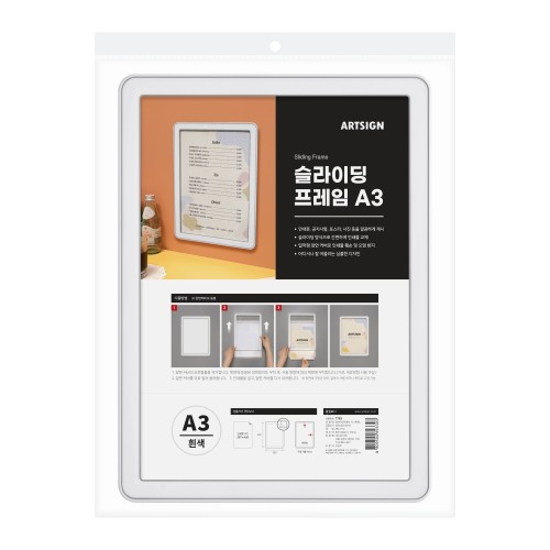 A3, 프레임, 게시판, 메뉴판, 인증서, 수료증, 홍보물, 공고문, 병원, 부착형, 벽걸이형, 슬라이딩방식
