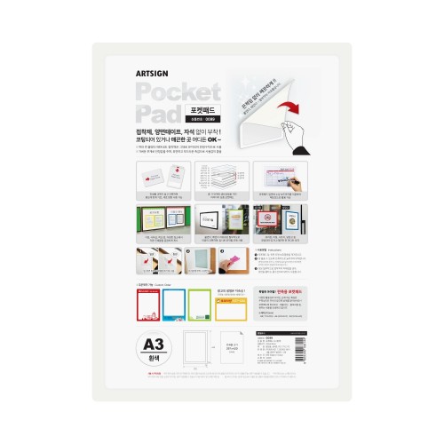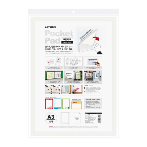 포켓패드, A3사이즈, 부착식, 안내판, 안내문, 게시판, 게시판꾸미기, 냉장고메모보드