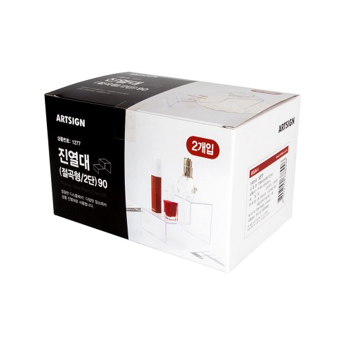 투명한 재질의 2단 절곡형 받침대로 깔끔하게 디스플레이할 수 있는 상품 진열대입니다.