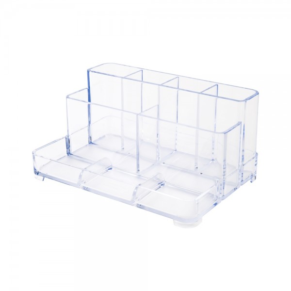각종 사무용품, 소품 등을 정리할 수 있는 투명 재질의 수납 정리함입니다. 9칸으로 나누어져 있어 깔끔하게 보관, 정리가 가능합니다.