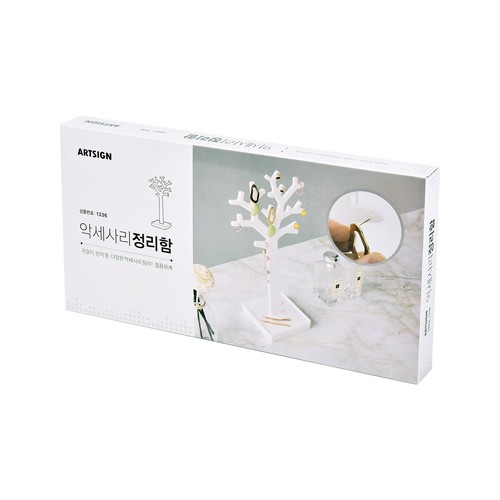 심플한 디자인으로 나뭇가지마다 귀걸이를 걸 수 있는 구멍이 있고 받침대가 있어 그 위에