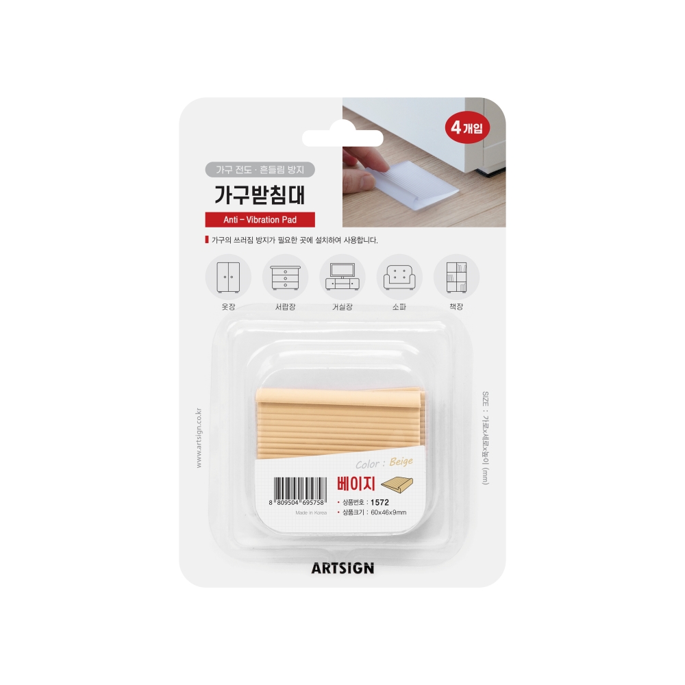 충격이나 지진 발생 시 가구의 흔들림 방지, 진동 흡수에 도움을 주는 가구받침대 입니다. 가구의 쓰러짐 방지에 효과가 있습니다.
