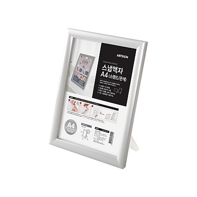 사용방법: 테두리 프레임을 열어 앞면 커버를 꺼낸 뒤, 액자와 앞면 커버 사이에 인쇄물을 넣고 프레임을 닫아 받침대를 세워 사용합니다.
