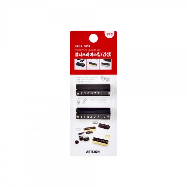 디스플레이가 필요한 소형 전자제품, 귀금속, 악세사리, 패션잡화 등에가격을 표시할 때 사용하는 멀티 프라이스칩입니다. 다양한 숫자와 외화표시도 가능하며 4면(총40면) 활용으로 다양한 표현이 가능합니다.