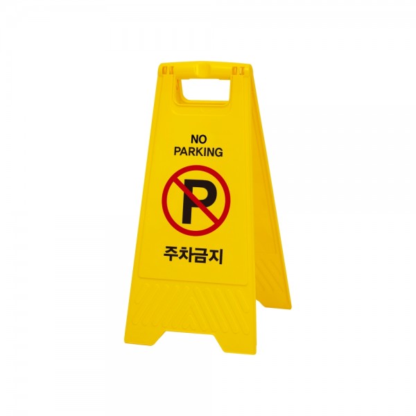 선명한 색상의 주목성이 뛰어난 A자형 표지판입니다.주차금지 구역임을 알려줍니다.